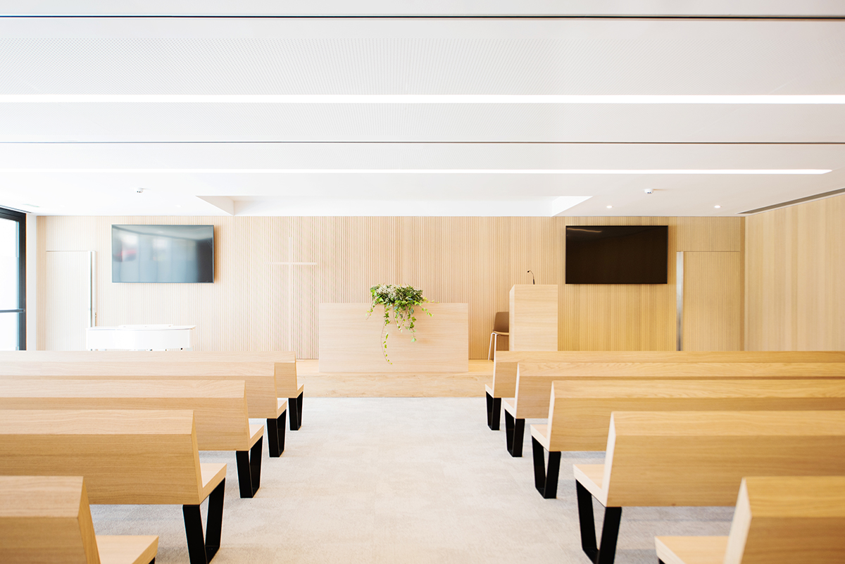 Un oratorio multiconfesional con capacidad para más de 150 personas, para que las familias puedan estar acompañadas por amigos y allegados